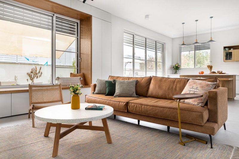 כלל הזהב: לפחות הרגליים הקדמיות של הספה והכורסאות חייבות לעמוד על השטיח. זה מייצר תחושת מרחב והמשכיות.